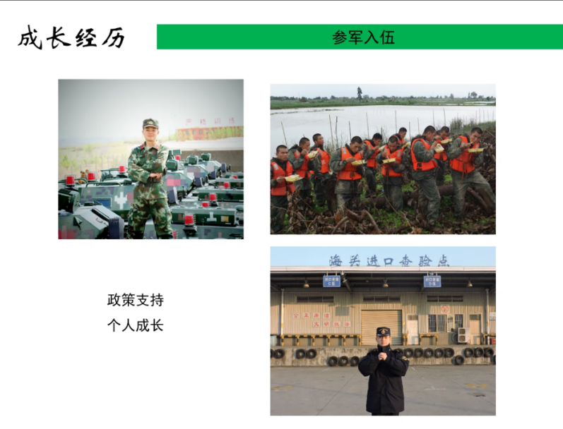 曹阳学长从一位在校学长的角度出发,从参军入伍、志愿公益、读博发展这三个方面来进行分享。