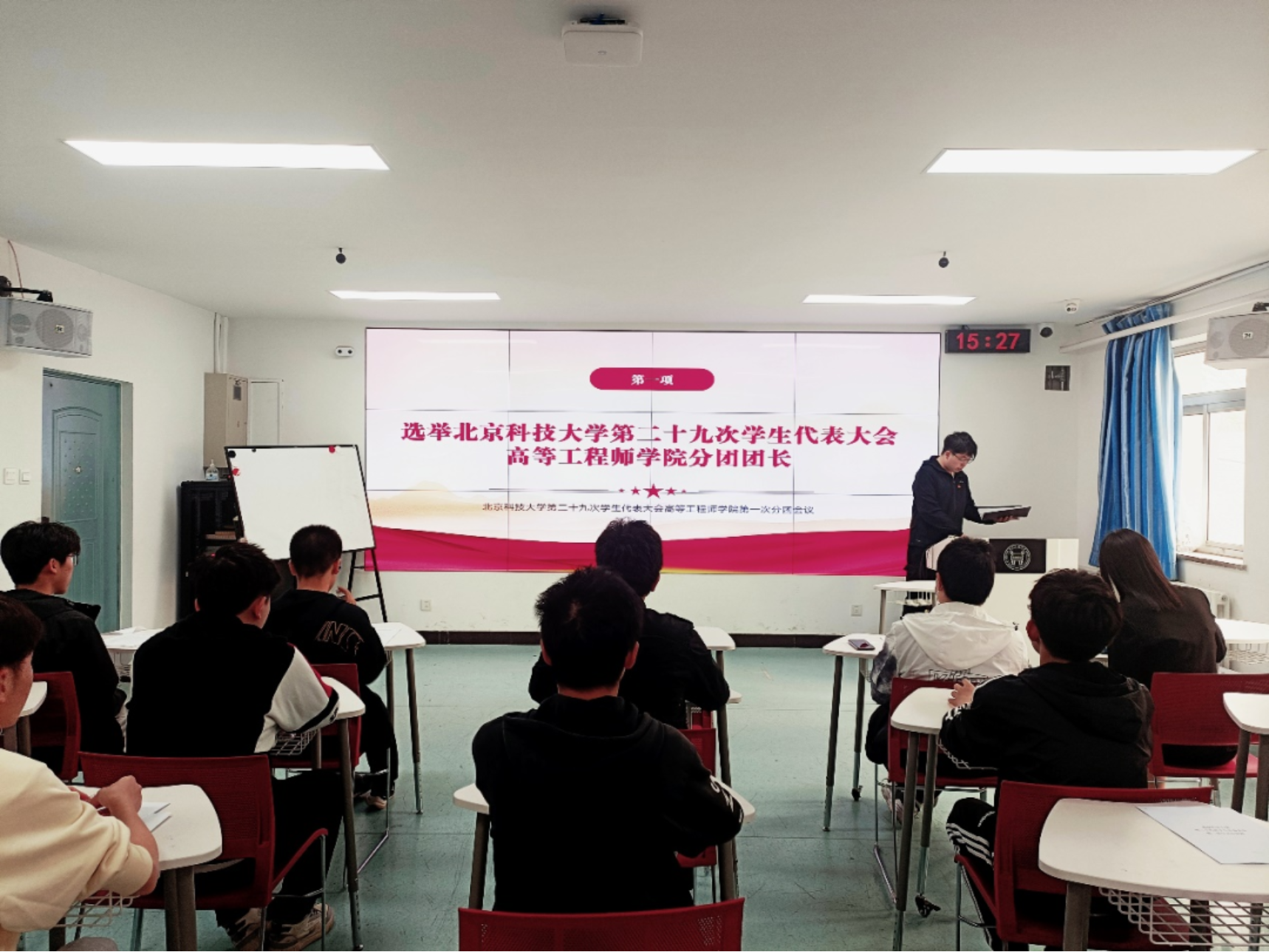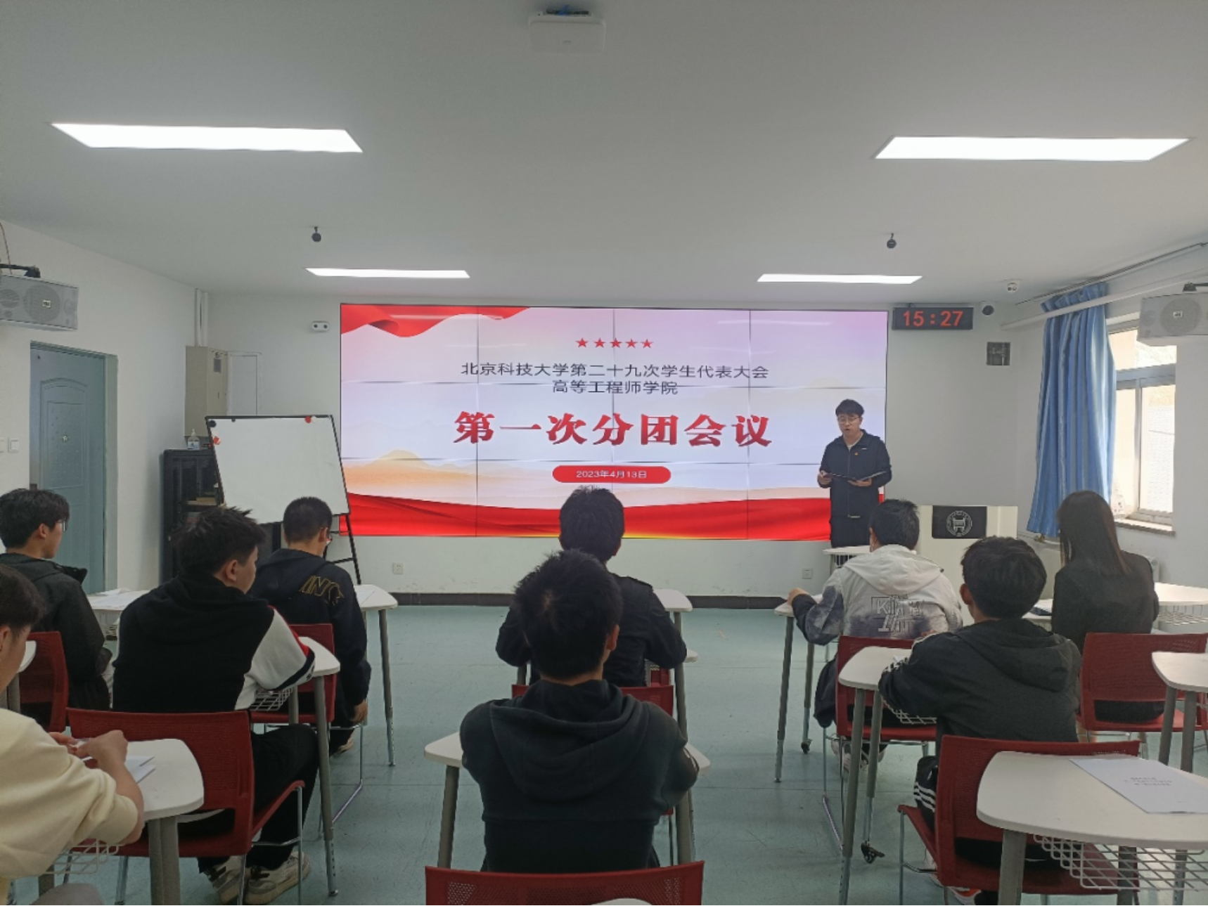 根据《中华全国学生联合会章程》、《北京市学生联合会章程》和《好色tv 学生会章程》有关规定,好色tv 好色tv 于2023年4月13日下午15时30分召开了好色tv 第二十九次学生代表大会好色tv 第一次分团会议。本次会议参会学生代表应到10人,实到9人,校会代表牛一霖学长出席会议,大会严格按照有关章程施行,各项议程依次有序进行,获得圆满成功。