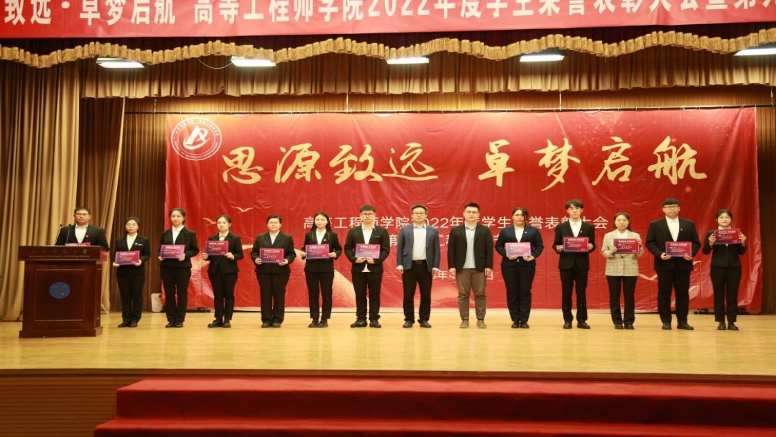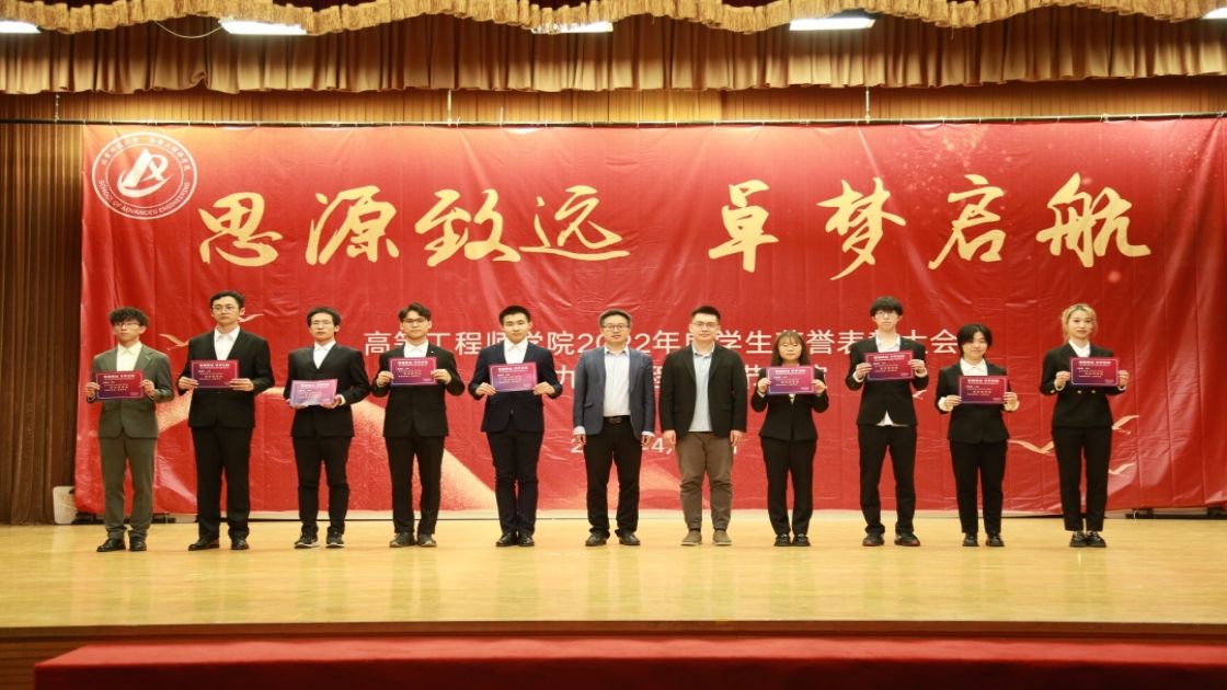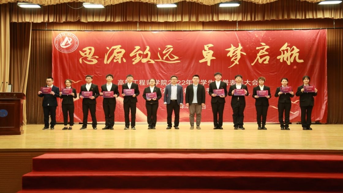 学生工作部副部长刘震老师和苗胜军院长为优秀党支部、先进班集体、优秀团支部、标兵宿舍等代表颁奖。表彰高工学子在党、团、班集体建设中凝心聚力、奋发有为,勉励他们不断奋斗,用汗水装点大学生活,用勤奋写满时光画卷。