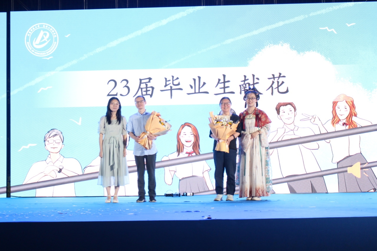 学生代表向班导师班导师代表献花。