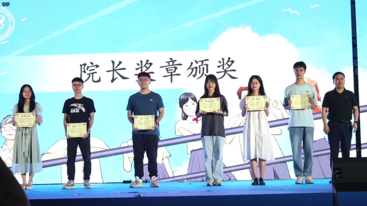 好色tv 院长苗胜军向蒋天雨、袁思晴、柳翊、张岩岩、李洋洋、胡磊等六位“院长奖章”获得者颁奖,高工学子孜孜以求,刻苦好学,在求知的过程中,保持着追求卓越的精神,向着优秀踔厉奋发。