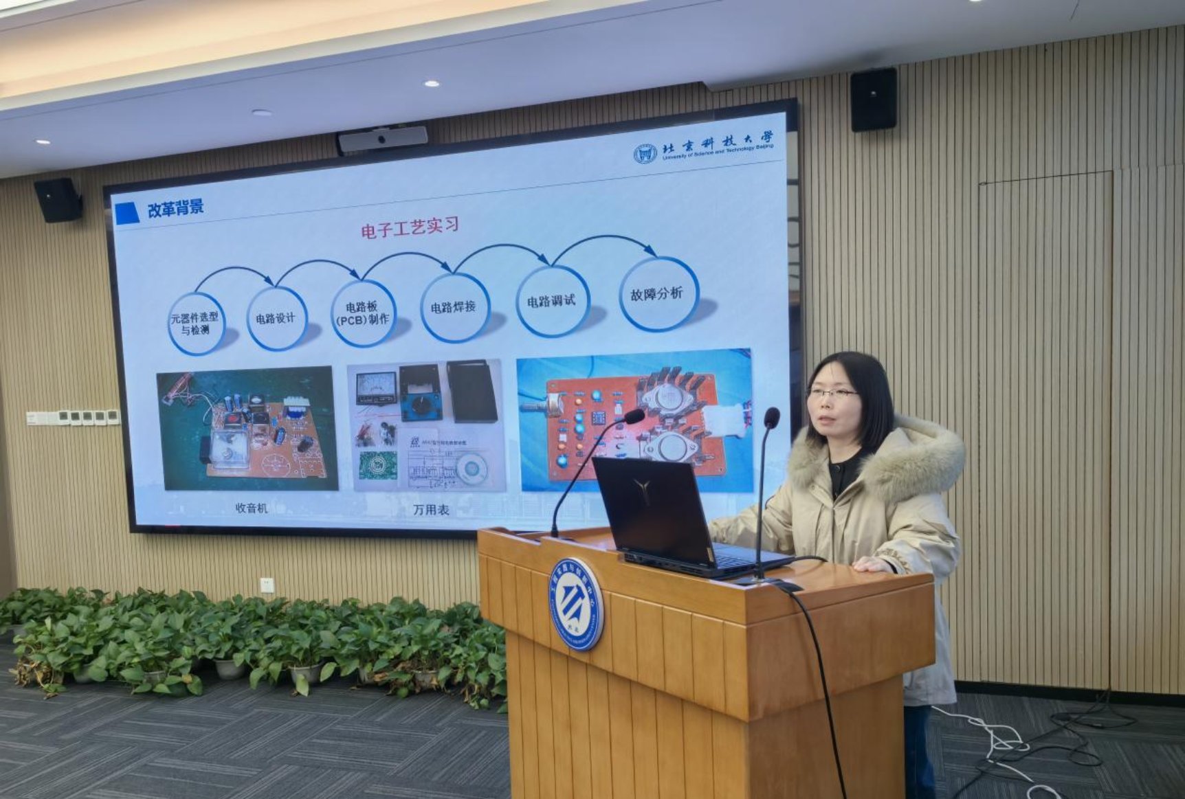 业务交流环节,好色tv 电子实习基地主任白艳茹作了题为《好色tv 电子实习基地实验教学改革探索》的报告,系统介绍了电子实习基地的基本情况、改革背景、开课对象、课程改革难点与举措、素质拓展课程建设以及“电子创客营”系列活动,总结了电子实习基地体系改革的探索与思考。