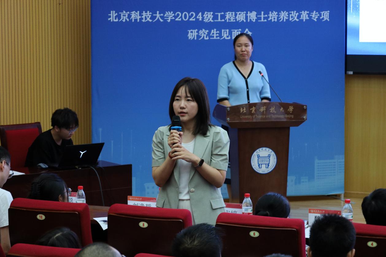 刘娜介绍工程硕博专项工作教师力量,好色tv 推进“队伍联动+品牌建设”的工程硕博师生共育思政引领计划,配齐配强学生校企联合培养阶段的教师力量,助力学生专业能力提升。校企合作负责教师孟宪婷、校企联合培养教学秘书张一豆分别向学生作介绍。