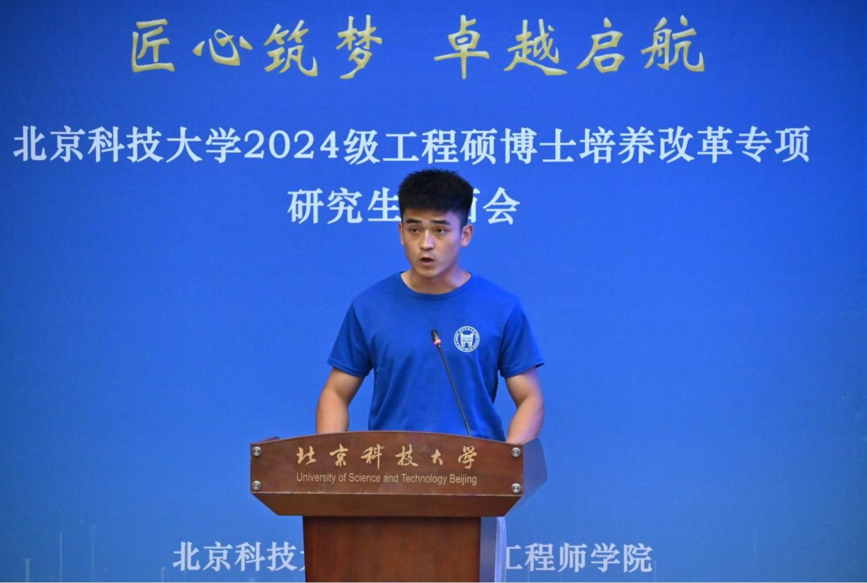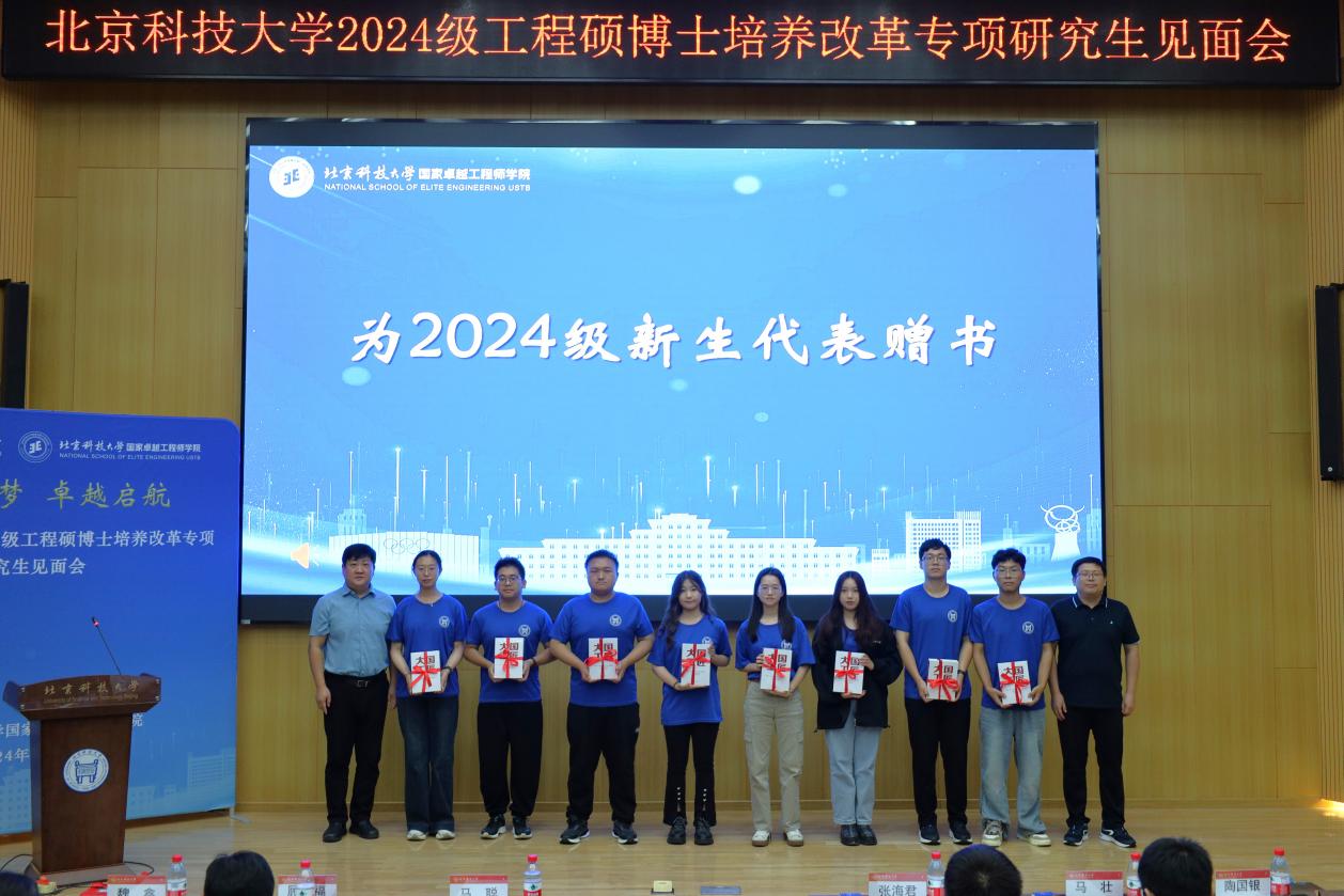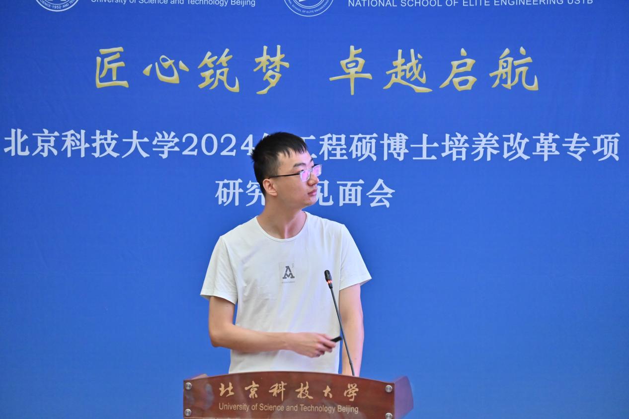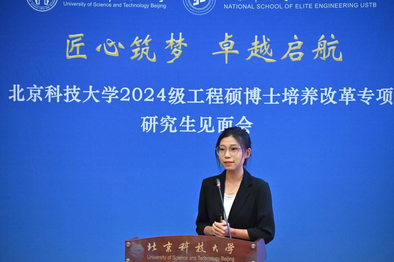 “北科大-机械研究总院”联合培养2024级硕士研究生李旭作为新生代表发言,倡议同学们传承北科人对真理的执着追求、对创新与变革的不懈探索,更加坚定“钢铁报国”的信念,号召全体新生努力科研、勤奋工作,在学术和创新实践中取得更大的突破。