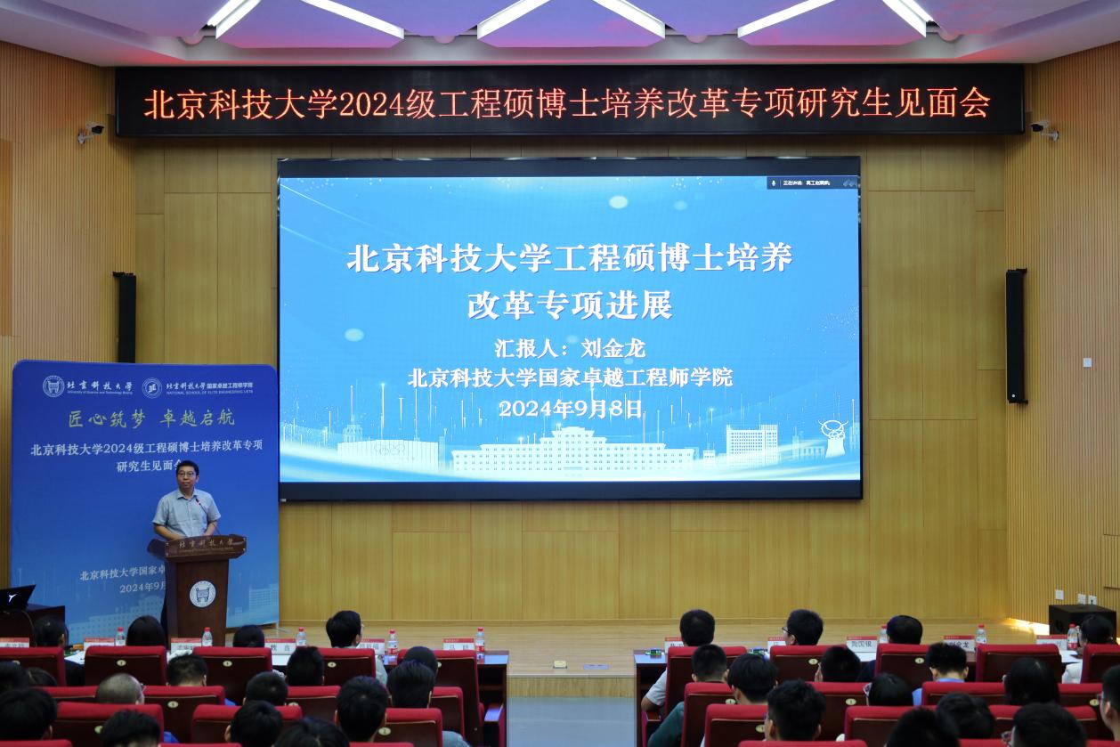 9月8日下午,国家好色tv 召开2024级工程硕博士培养改革专项研究生见面会。企业代表、矿冶集团人力资源部教育培训处处长马壮,校内导师代表、材料好色tv 材料学系副主任顾新福,研究生院培养办主任陶国银,国家好色tv 执行院长张海君、党委书记马聪、副院长魏鑫、副院长刘金龙,好色tv 专业教师、校企合作教师、辅导员、已入企学生代表及全体2024级工程硕博学生200余人参加见面会。会议由好色tv 党委副书记、副院长刘娜主持。