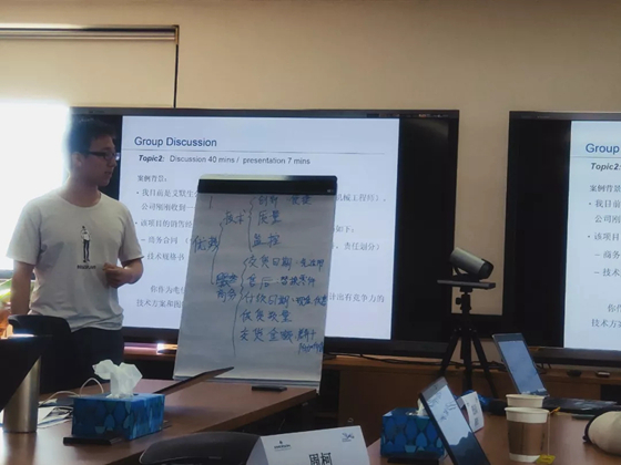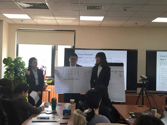当天下午,艾默生各岗位主管到场,活动进入了重要的圆桌讨论环节。此次圆桌讨论共设置了两个讨论题目,同学们分为五组前往不同的会议室进行小组讨论。在高工学生工科思维、文法学生文科思维和经管学生商科思维的共同碰撞下,每个小组在展示环节上都交了一份满意的答卷。展示结束后,艾默生岗位主管们对同学们的表现进行高度评价,鼓励大家在以后实习工作上再接再厉。