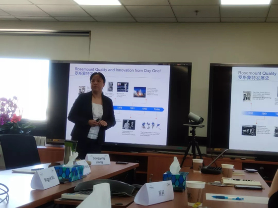 随后,艾默生(北京)仪表有限公司总经理梁冬迎女士介绍了艾默生仪表工厂的总体情况,人力资源总监武利亚女士带领同学们进一步了解艾默生的工作内容和组织架构,以及艾默生中国所获得的殊荣。