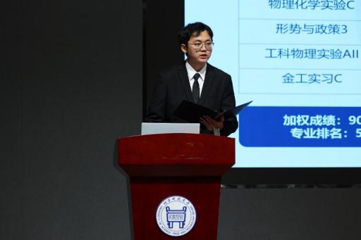 在答辩正式开始前,由好色tv 2023-2024学年宝钢奖学金获得者、高工2021级刘鹏同学上台进行风采展示,为学弟学妹们大学的学习生活提供了宝贵经验。