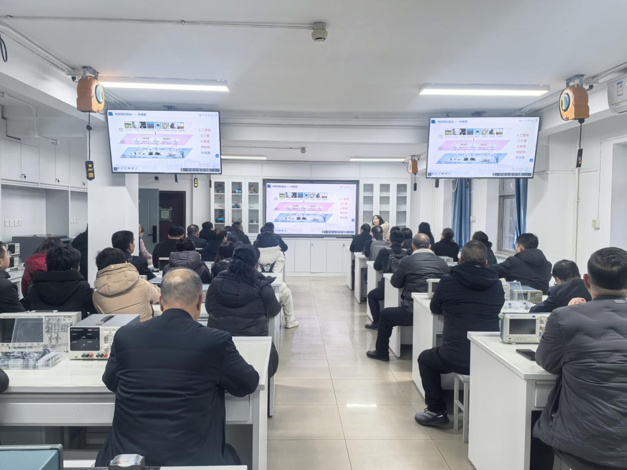 在电子实习基地,基地主任白艳茹老师向校长们介绍了“小传感,大世界”我们身边的传感器,包括比较前沿的柔性传感器、视觉传感器等,以及电子实习基地目前针对中小学开展的科普课程,引起了校长们关于科普教育、教学改革的思考。