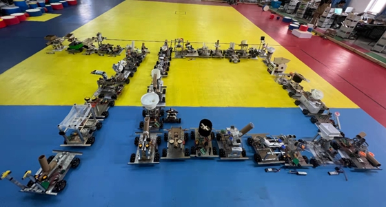 值此建校70年校庆之际,机器人工程实践基地MEI竞技机器人团队以绘制板报,装饰机器人等方式烘托校庆氛围,并通过用机器人组字等独特方式庆祝科大生日。用于组字的机器人全部来自于参加机器人校内赛的同学设计制作,今年的校内赛共有约500名学生参赛为历届之最,体现了我校“学风严谨,崇尚实践”传统,也展示了我校在科创教育普及方面的成果。