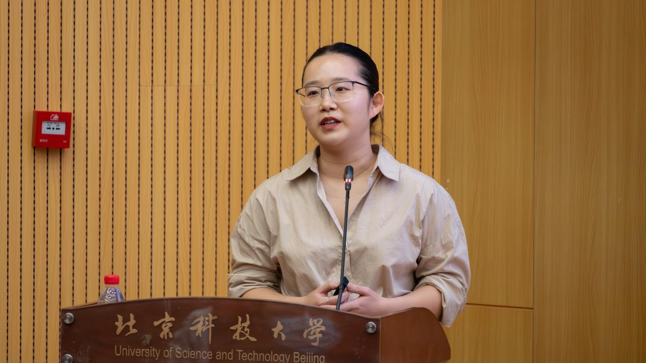 肖怡雯博士以“青春游于意,君子志于道”为主题向大家分享大学生活的经历和经验,她从个人简介、科研经历、工作志愿和运动突破四个方面介绍了大学成长以及进入碳中和研究院后的感悟和收获,引发了同学们的思考和共鸣。