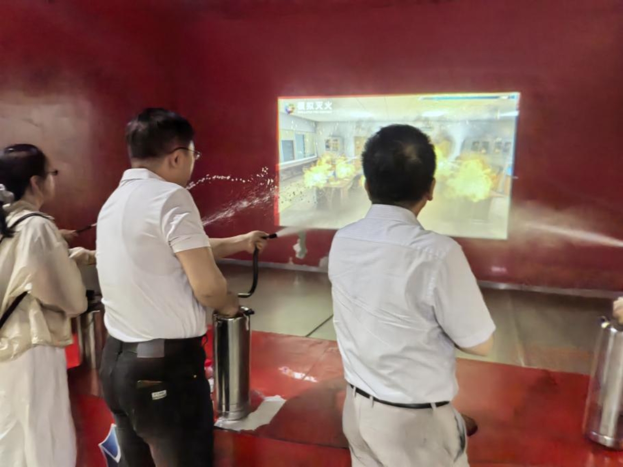 在火灾逃生演练区,通过烟雾走廊模拟和灭火器实操,强化了火场应急处置能力。