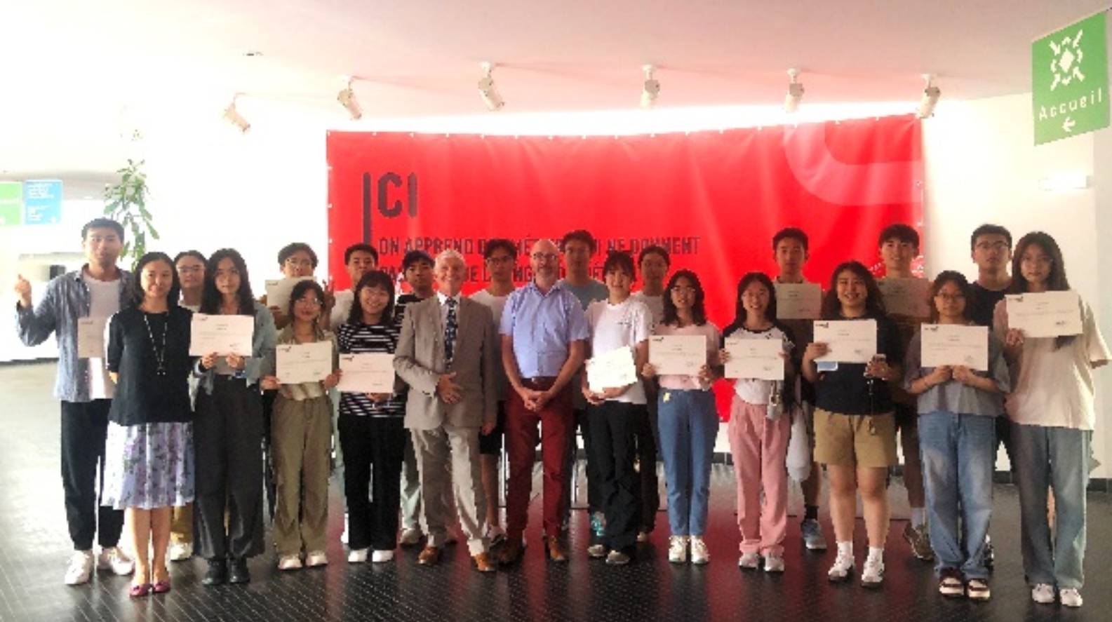 毕业典礼由UniLaSalle-AMIENS校长、副校长、授课教师及相关负责人和我校访学团全体师生出席,校长为学生们一一颁发毕业证书。