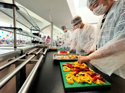 在法国饮食文化交流中,同学们尝试制作了一顿标准的法餐。
