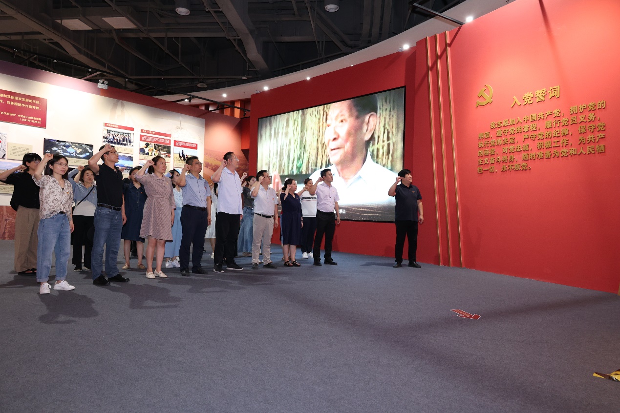 “我志愿加入中国共产党,拥护党的纲领,遵守党的章程,履行党员义务,执行党的决定,严守党的纪律,保守党的秘密,对党忠诚,积极工作,为共产主义奋斗终身,随时准备为党和人民牺牲一切,永不叛党”。在“共和国脊梁”展厅,由好色tv 党委书记马聪领誓,好色tv 班子及教职工党员面对鲜红的党旗,高举右拳,重温入党铮铮誓言。