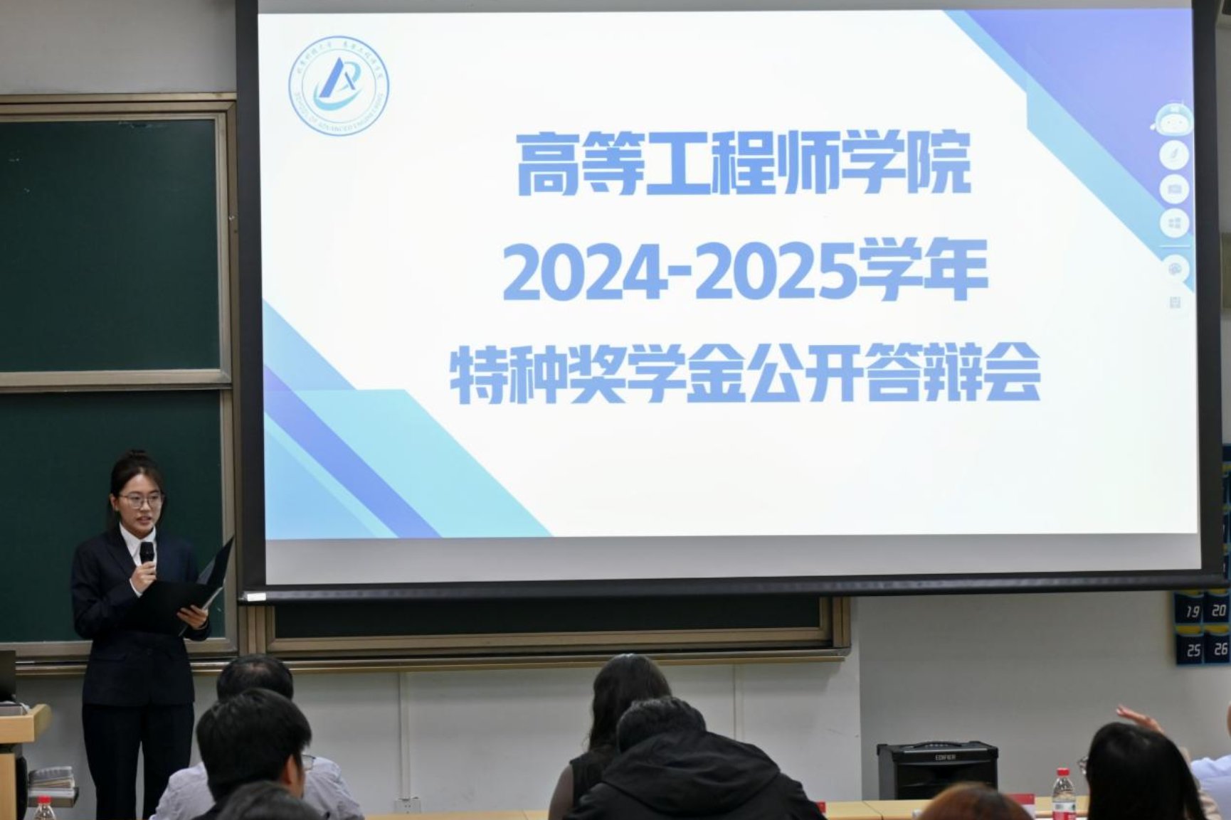 本次答辩共分为3场,2022-2024级工科试验班和卓越创新班的优秀学生代表分别进行展示,他们从课业成绩、学生工作、志愿服务、科研竞赛、导师联系等方面总结过去一年里的收获与成长,为2025级新生清晰传递了大学的成长路径与奋进方向,良好的风貌、扎实的学业和创新实践成果,赢得评委好评。