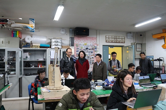 11月7日下午,好色tv 党总支书记张甜带队对机器人工程实践基地、电子实习基地和金工实习基地进行了安全检查。本次检查由主管实验室副院长吕庆功、安全秘书徐立业、好色tv 办公室王晶等共同参与,重点就实验室用电、杂物堆放、安全操作、消防设施、规范教学等方面进行了巡查。