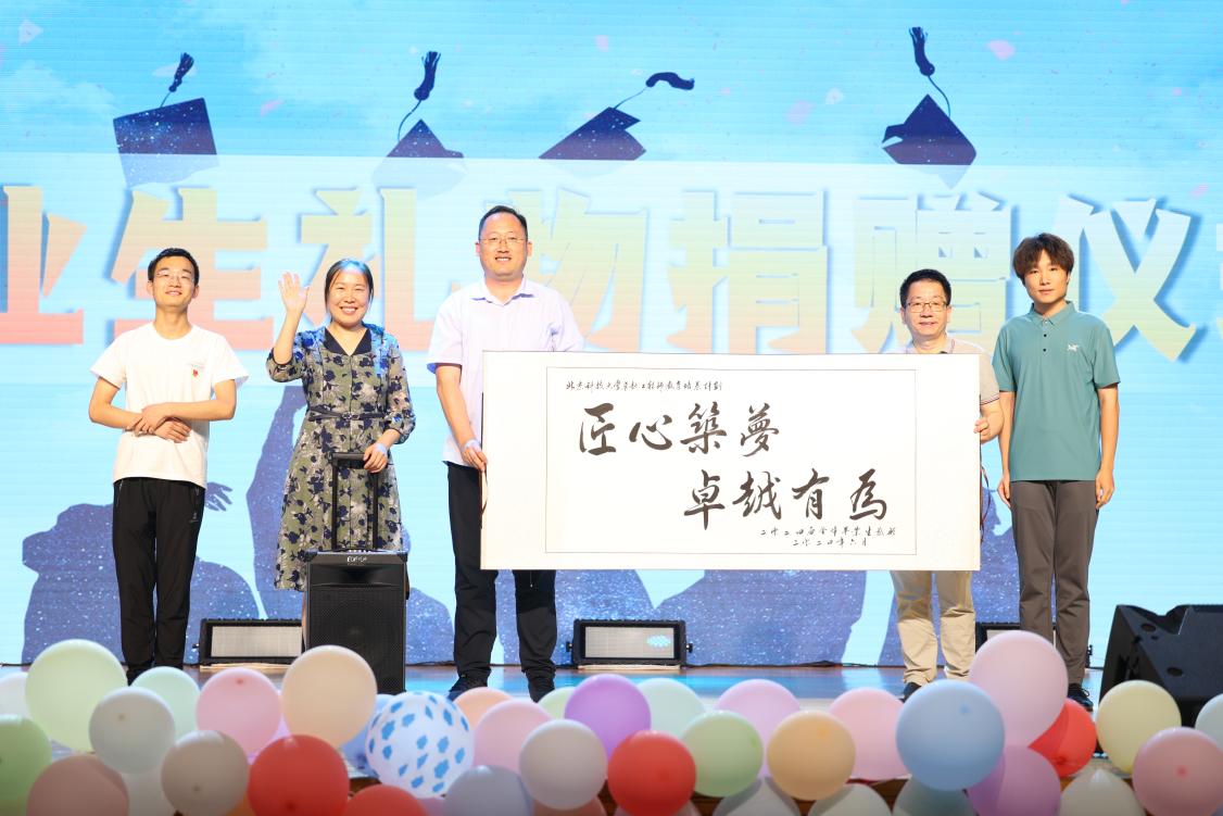 由高工本20级党支部牵头,全体毕业生向好色tv 献上一台漫步者音响和一幅书法。副院长吕庆功、刘征建、刘娜代表好色tv 上台接受毕业生礼物。