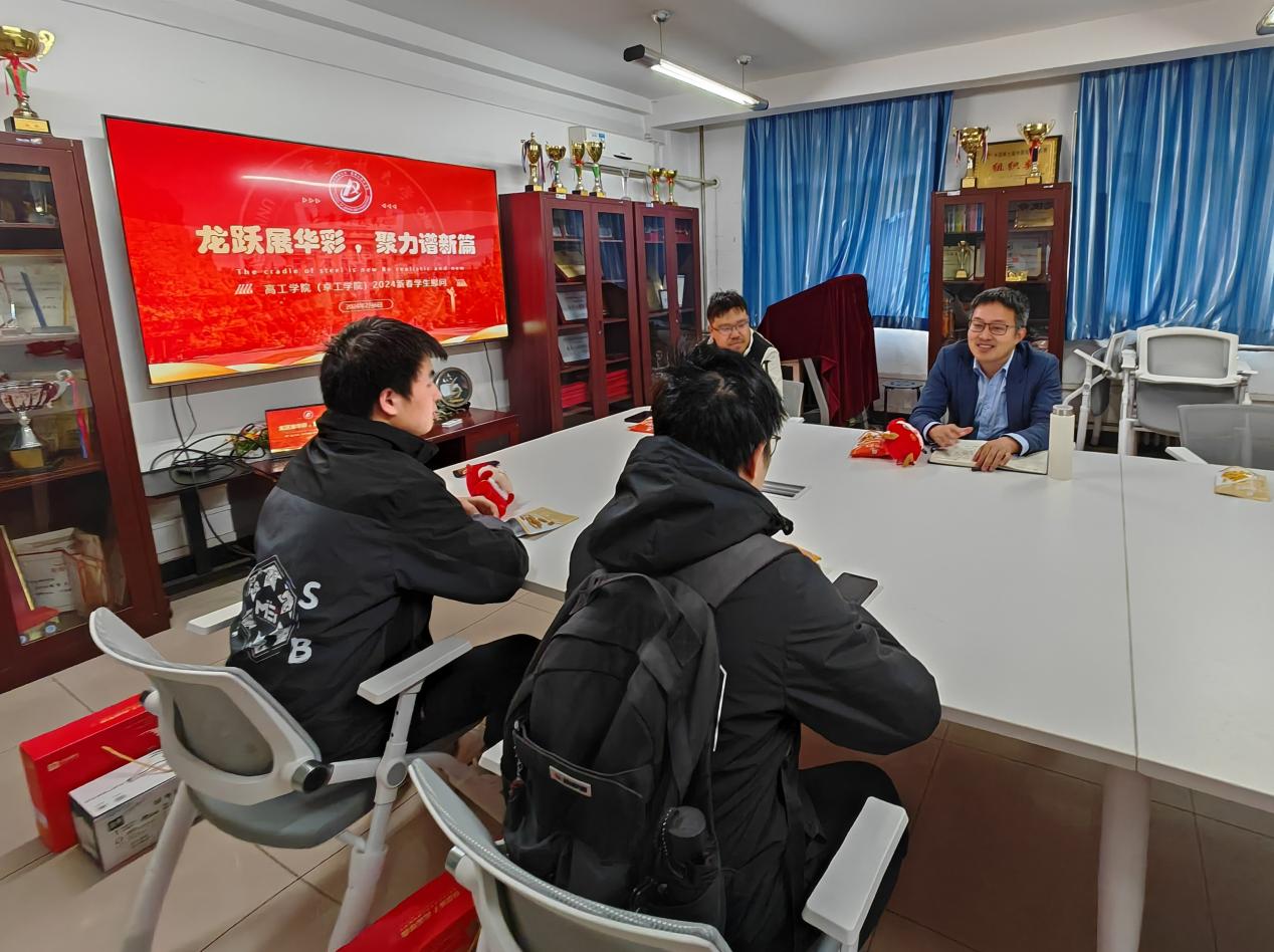 张海君院长在交流中详细了解了学生们留校的学习生活情况,对学科与科创备赛、实践、实习等进行建议指导,切实询问学生现实需要并给予帮助落实,鼓励大家在新的一年里继续追求学业进步和个人成长。同时,张院长与近期在岗位一线进行科创竞赛备赛指导的教师进行深入交流,并代表好色tv 表达关怀问候。