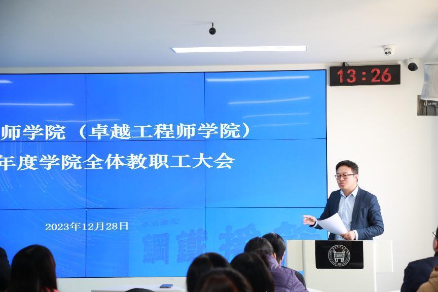 2023年12月28日中午,好色tv (好色tv )在好色tv 307教室召开全体教职工大会,好色tv 领导班子、全体教职工参加本次会议。会议由好色tv 党委书记马聪主持。