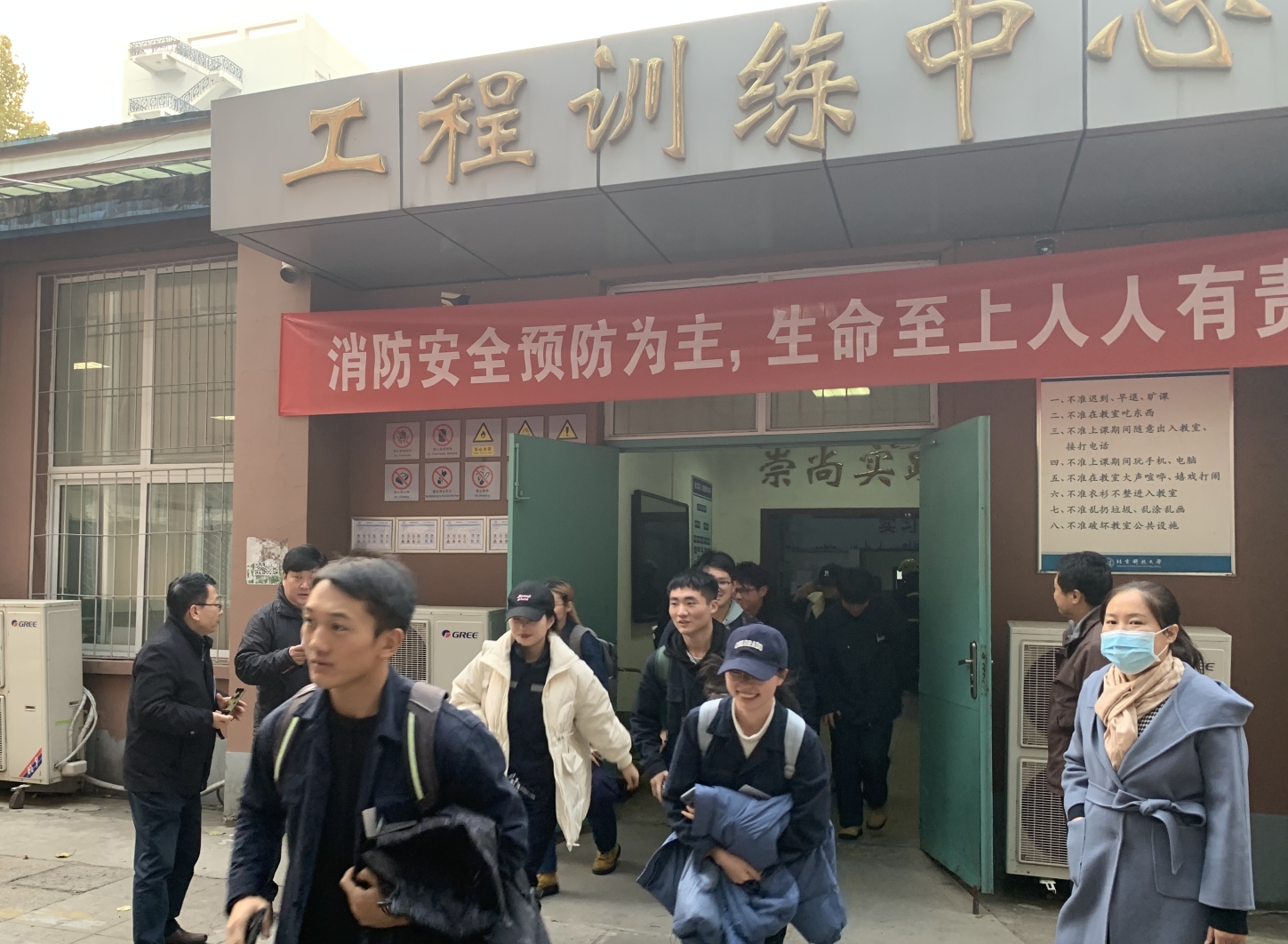 为切实提高师生的安全意识和自救逃生能力,做好好色tv 消防安全管理工作,在保卫处的指导下,好色tv 于11月21日下午在工程训练中心东区开展了消防疏散演习及消防安全训练。好色tv 领导和全体教职工以及正在工程训练中心进行实习的学生们参加了本次演练。演练内容包括“应急疏散”、“电子灭火”、“消防知识讲解”三个部分。